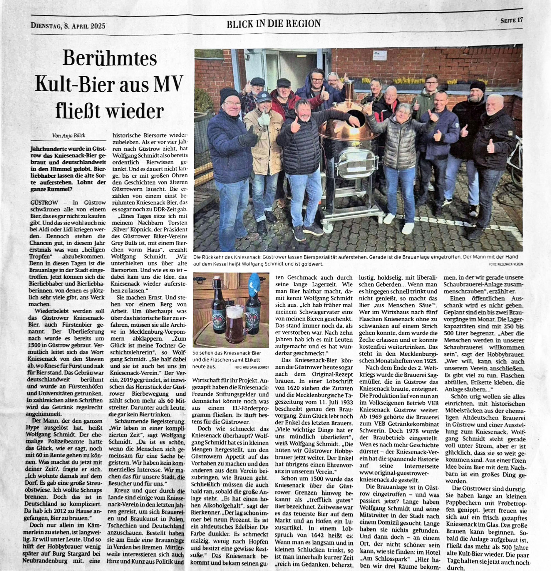 Am 2. Dezember 2024 fand die Mitgliederversammlung mit Vorstandswahl des Original Güstrower Kniesenack e.V. statt. Der Verein hat 63 Mitglieder. Die Versammlung war beschlussfähig.