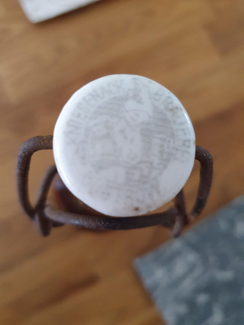 Keramik Bügelverschluss Archiv SchmidtKeramikbügelverschluss mit Kniesenack-Logo, Archiv Schmidt